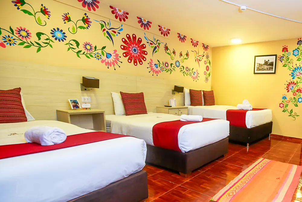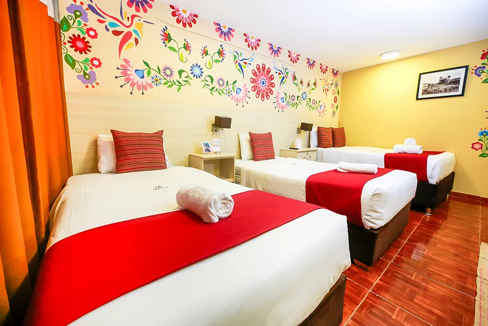 Quarto amplo para três pessoas. Ideal para grupos pequenos ou família, com todos os serviços para uma estadia inesquecível em Cusco.